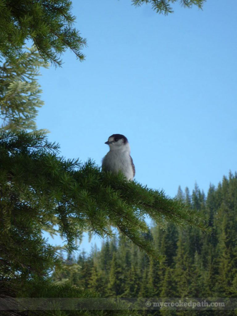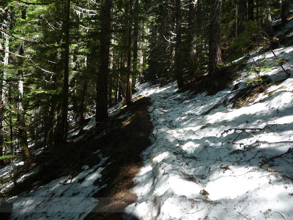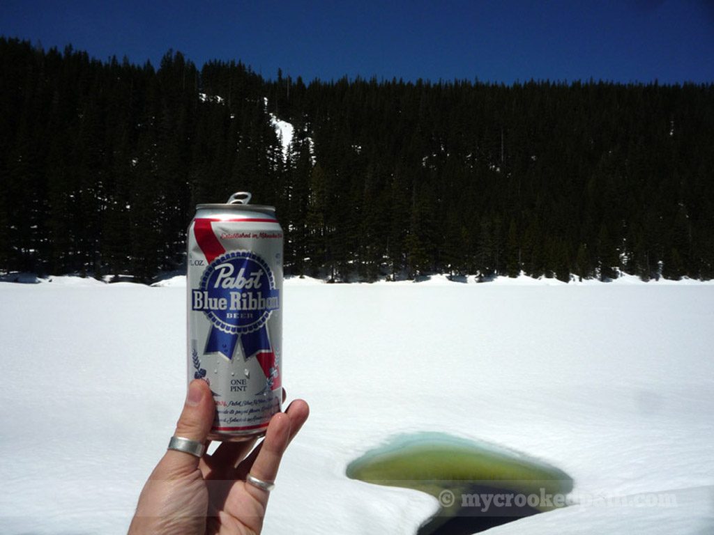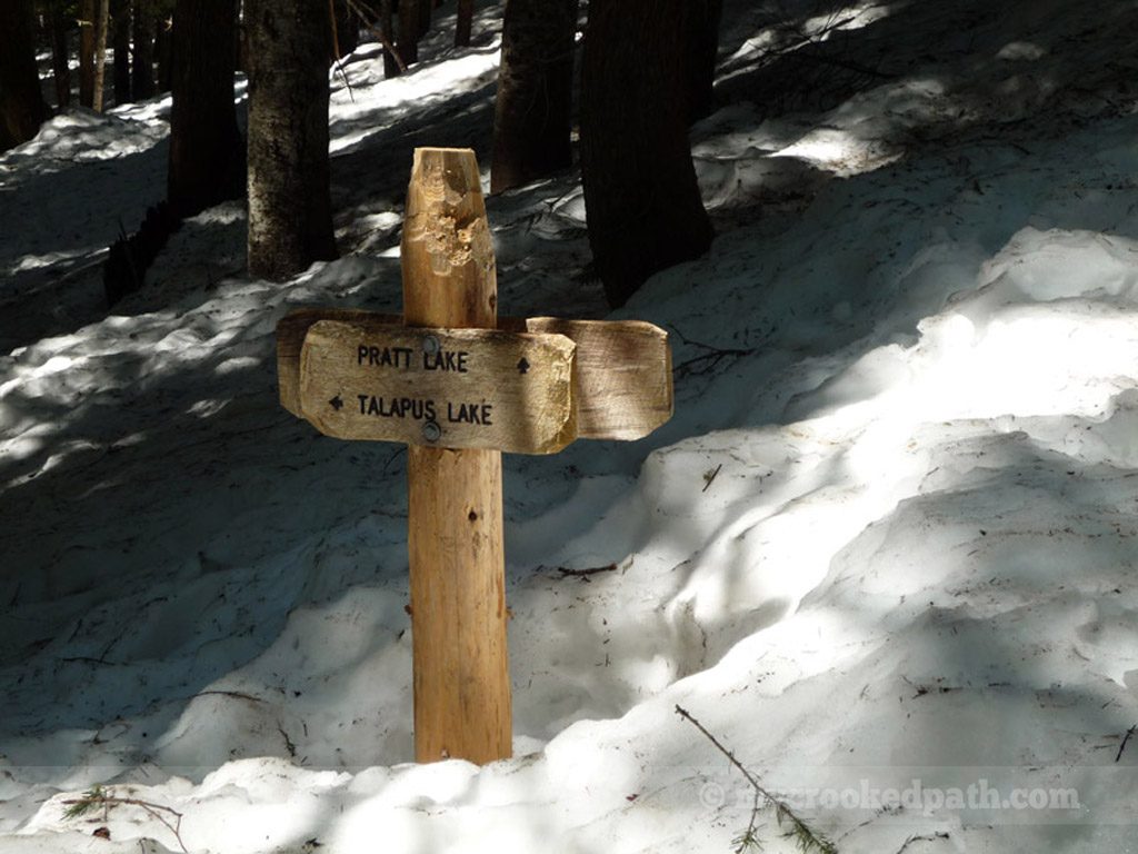 [dropcap]T[/dropcap]he first nice day of the year, I played hooky and went to check out Pratt Lake. Unfortunately, my plans changed when I hit deep snow about a mile and a half up the trail. After post-holing up to my knees, I decided to forgo Pratt and cut over to Olallie Lake instead. Well, Olallie was still snowbound as well. Had some lunch on a mound of snow and let Kirin play with the nearby Camp Robbers. Got a tan.
